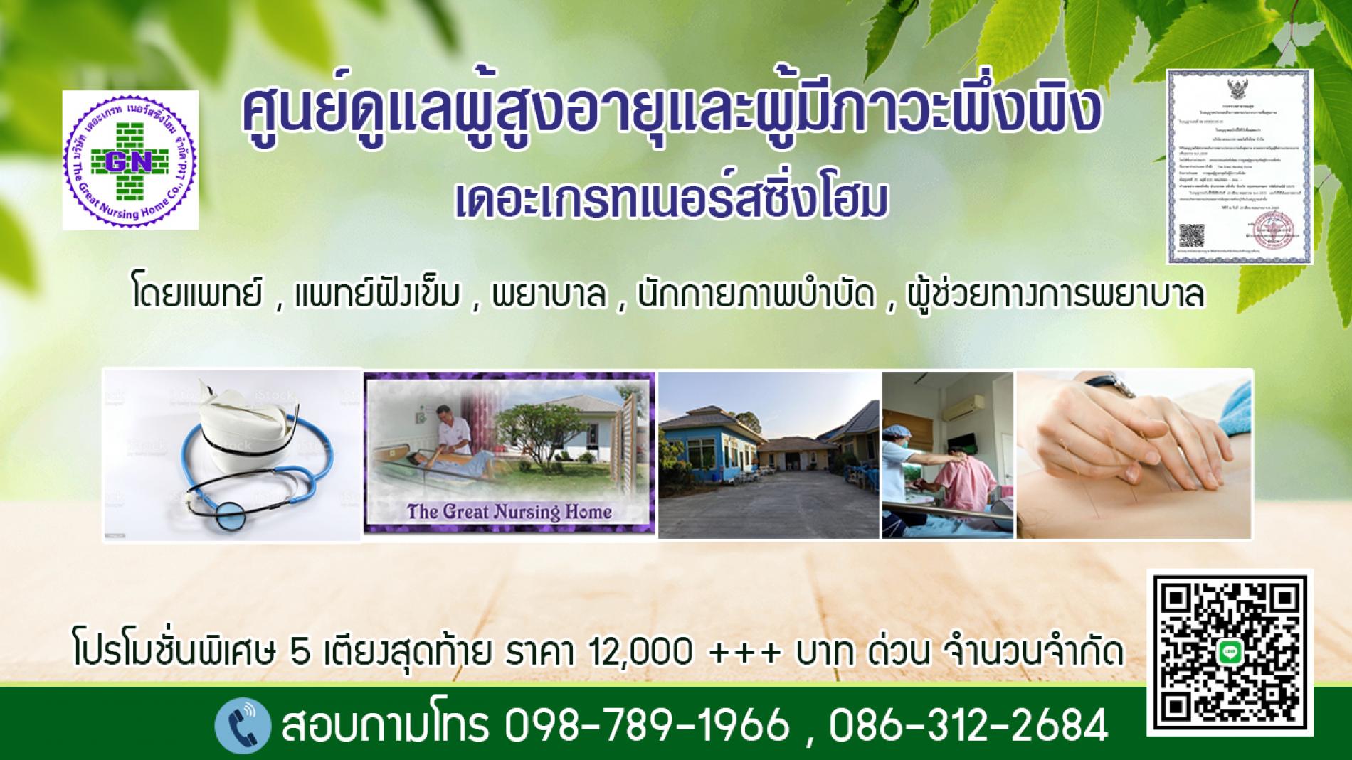 สถานดูแลผู้สูงอายุหรือผู้มีภาวะพึ่งพิง รับดูแลผู้สูงอายุ ผู้ป่วยติดเตียง อัมพฤกษ์ อัมพาตน์ หลังผ่าตัด จิตเวช อัลไซเมอร์โดยแพทย์ผู้เชี่ยวชาญด้านการฟื้นฟู ด้านฝังเข็ม นักกายภาพบําบัด พยาบาลวิชาชีพ โดยผ่านการขึ้นทะเบียนกับ กรมสนับสนุนบริการสุขภาพ กระทรวงสาธารณสุข