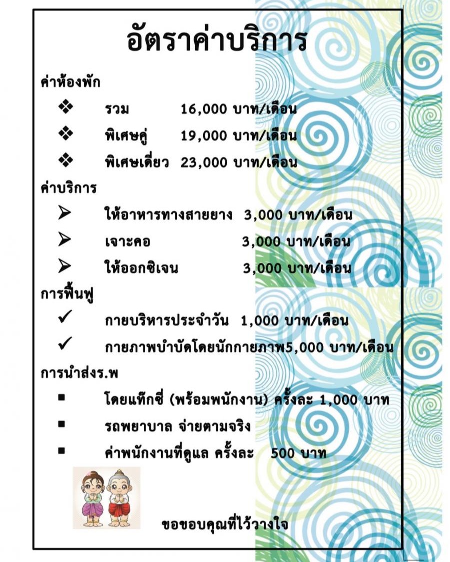 สถานดูแลผู้สูงอายุหรือผู้มีภาวะพึ่งพิง รับดูแลผู้สูงอายุ ผู้ป่วยติดเตียง อัมพฤกษ์ อัมพาตน์ หลังผ่าตัด จิตเวช อัลไซเมอร์โดยแพทย์ผู้เชี่ยวชาญด้านการฟื้นฟู ด้านฝังเข็ม นักกายภาพบําบัด พยาบาลวิชาชีพ โดยผ่านการขึ้นทะเบียนกับ กรมสนับสนุนบริการสุขภาพ กระทรวงสาธารณสุข